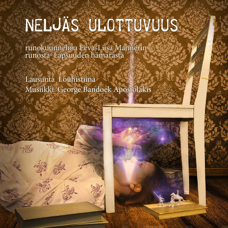 Neljäs ulottuvuus on runokuunnelma Eeva-Liisa Mannerin elämäkerrallinen runosta ”Lapsuuden hämärästä”. Se on kuin elokuva ilman kuvia. Apostolakisin luoma äänimaailma kuljettaa kuulijan Viipuriin Mannerin lapsuudenkodin tummiin tunnelmiin, leikkien mielikuvitusmaailmaan sekä lentomatkalle enon ka... Lue lisää