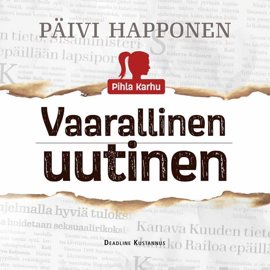 Vaarallinen uutinen on täysin uudenlainen rikosromaani todenmukaisine yksityiskohtineen karusta seksuaalirikosten maailmasta. Teos aloittaa myös kirjasarjan, jonka päähenkilö, rikostoimittaja Pihla Karhu vie lukijat ja kuuntelijat jännittäviin ja todentuntuisiin hetkiin rikosuutisoinnin äärellä.