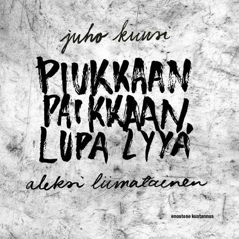 Juho Kuusen esikoisteos Piukkaan paikkaan lupa lyyä on herkän rosoinen, löyhästi elämäkerrallinen ja vahvasti omaääninen kasvutarina. Teos on puhekielinen, hyödyntää nykykielen lisäksi itämerensuomalaista kansanperinnettä ja pyrkii kuvaamaan niitä arjen asioita, jotka tavallisesti ovat vaarassa j... Lue lisää