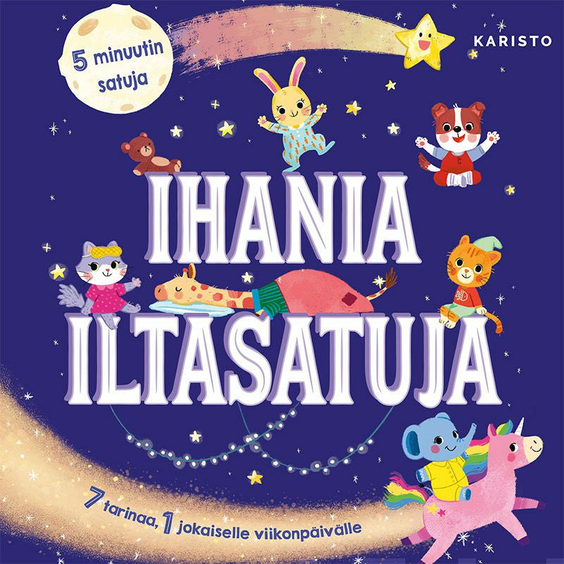 Kirja sisältää yhden 5-minuutin iltasadun jokaiselle viikonpäivälle. Uinu tähtitaivaan alla, lennä satumaisella yksisarvisella ja juksaa lapsenvahtia. Uusi seikkailu odottaa joka ilta! Lue lisää