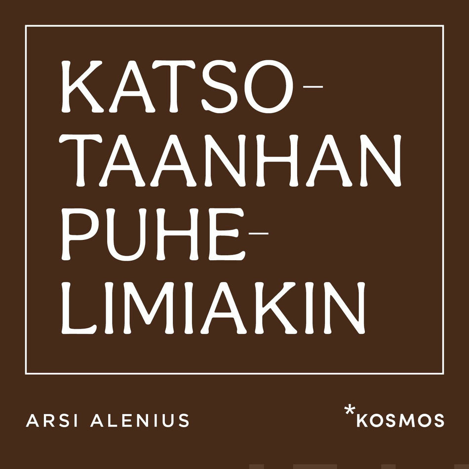 Meillä on käytössämme ehkä maailman paras kirjastolaitos, miten te kehtaatte olla noin sivistymättömiä? Arsi Aleniuksen Katsotaanhan puhelimiakin on hurja monologi ja hullun palavasieluinen saarna, joka näkee kirkkaasti myöhäiskapitalistisen maailman järjettömyyden. Se rikkoo kirjallisen tuopin lukijan naamaan ja kysyy mikset ole jo lukemassa kirjoja tai tekemässä tälle kaikelle jotain!