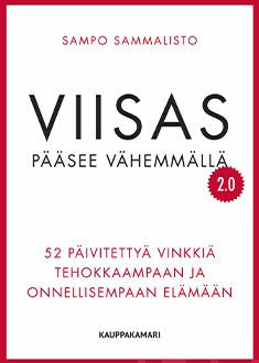Viisas pääsee vähemmällä 2.0 - 52 päivitettyä vinkkiä tehokkaampaan ja onnellisempaan elämään on nykyaikaisen ihmisen selviytymisopas, jonka käytännönläheisillä ja tutkitusti toimivilla vinkeillä pystyt menestymään paremmin sekä töissä että vapaa-ajalla. Kirja on uudistettu painos vuonna 2014 ilmestyneestä menestyskirjasta Viisas pääsee vähemmällä, joka on auttanut tuhansia suomalaisia lukijoita. Lue tämä kirja, jos haluat parempaa elämää itsellesi ja läheisillesi.