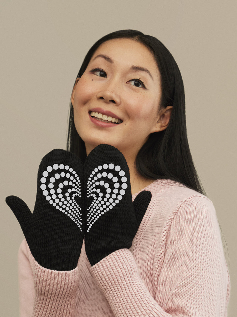 100% mulesingvapaa merinovilla, kaksinkertainen neulos. Lapasen selkäpuolella on laadukas heijastava painokuvio. Tuote on suunniteltu ja valmistettu Suomessa.