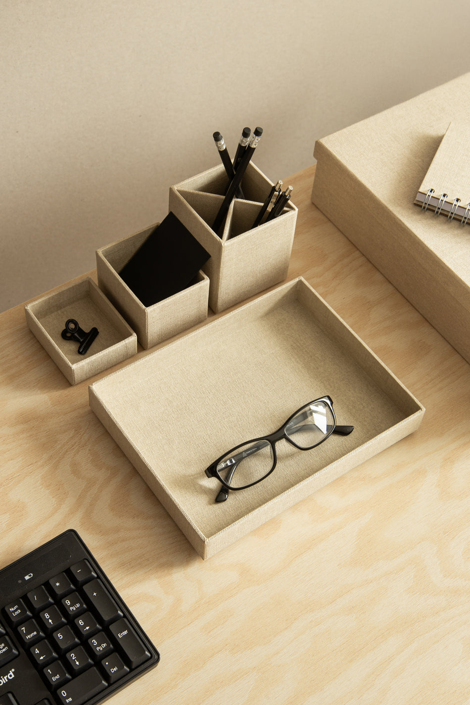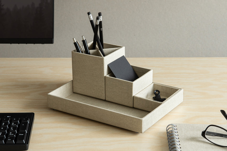 Bigso Lena on kohokuvioinen, kierrätyspahvista valmistettu ja paperilaminoitu säilytysrasiasetti pienten tavaroiden järjestämiseen. Rasiat voidaan asetella vierekkäin tai käyttää erikseen.