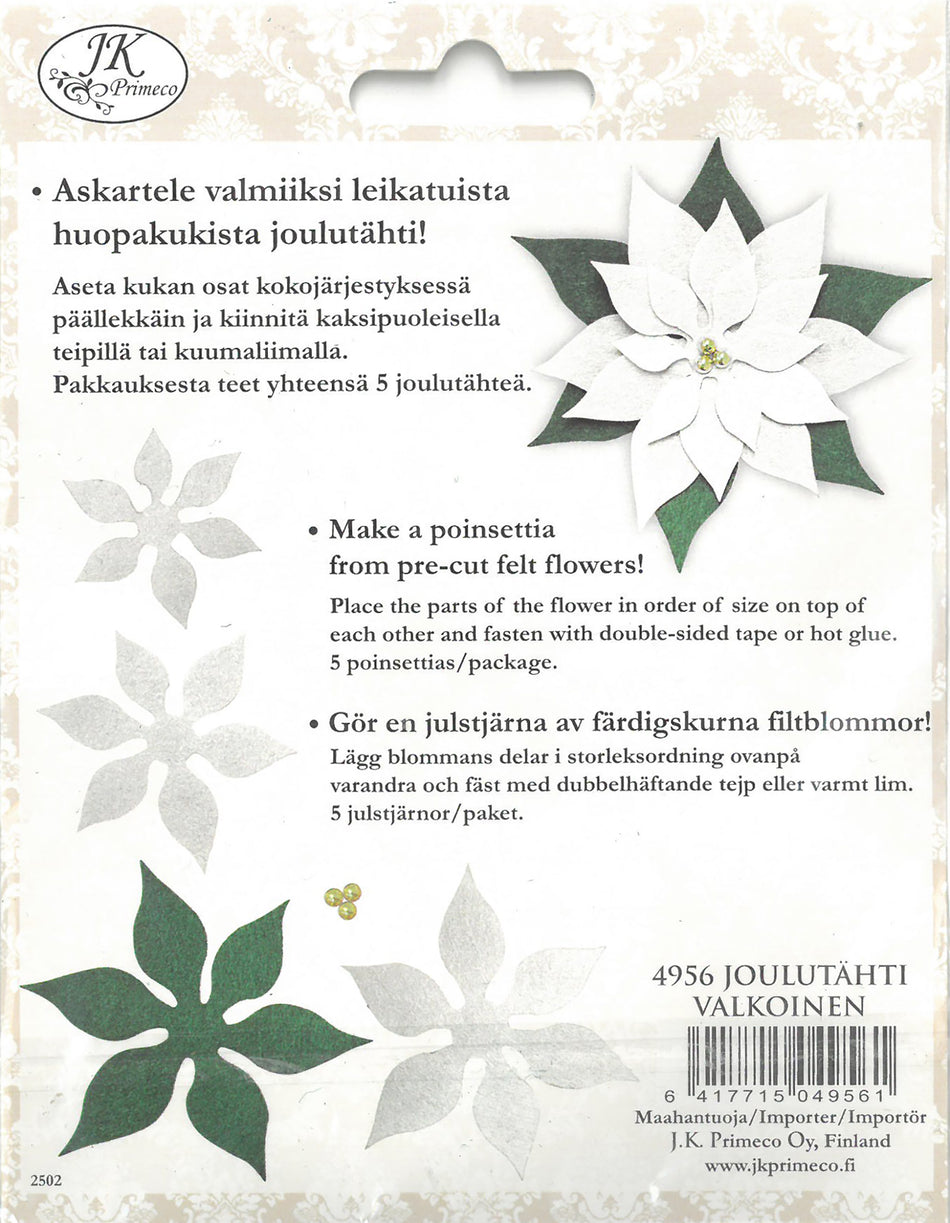 Huopakukat Joulutähti valkoinen 5kpl