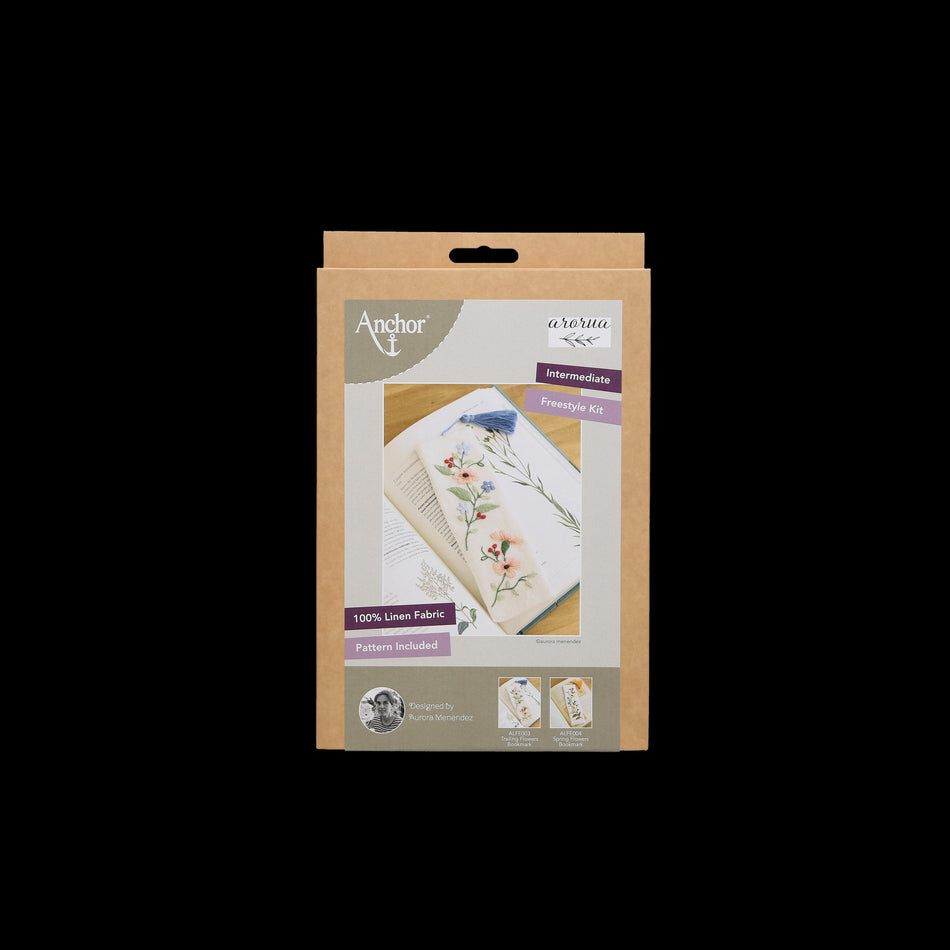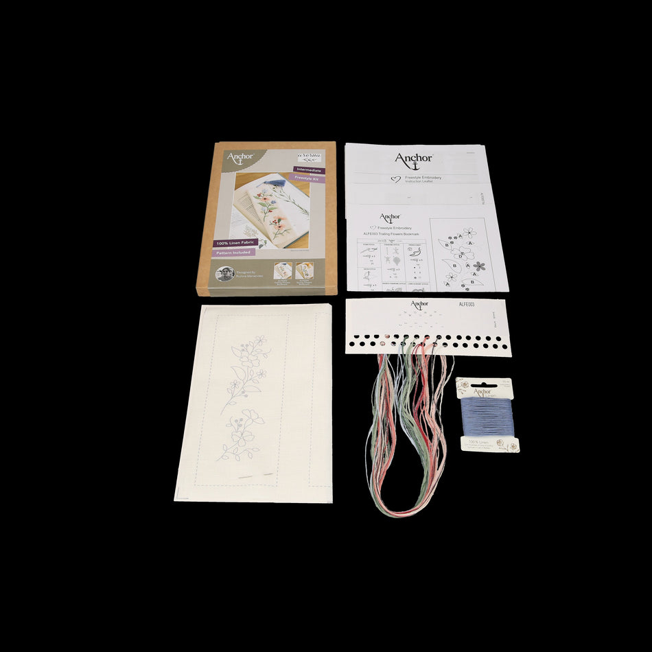 Kirjanmerkki, joka kirjotaan vapaakirjonnalla pellavakankaalle. Pohjakankaassa on valmiiksi piirretty kuvio, ja paketissa kaikki tarvittava projektin valmistamiseksi. Kirjontalankana Anchor Linen 100 % pellava. Valmiin tuotteen koko 19 x 6 cm.