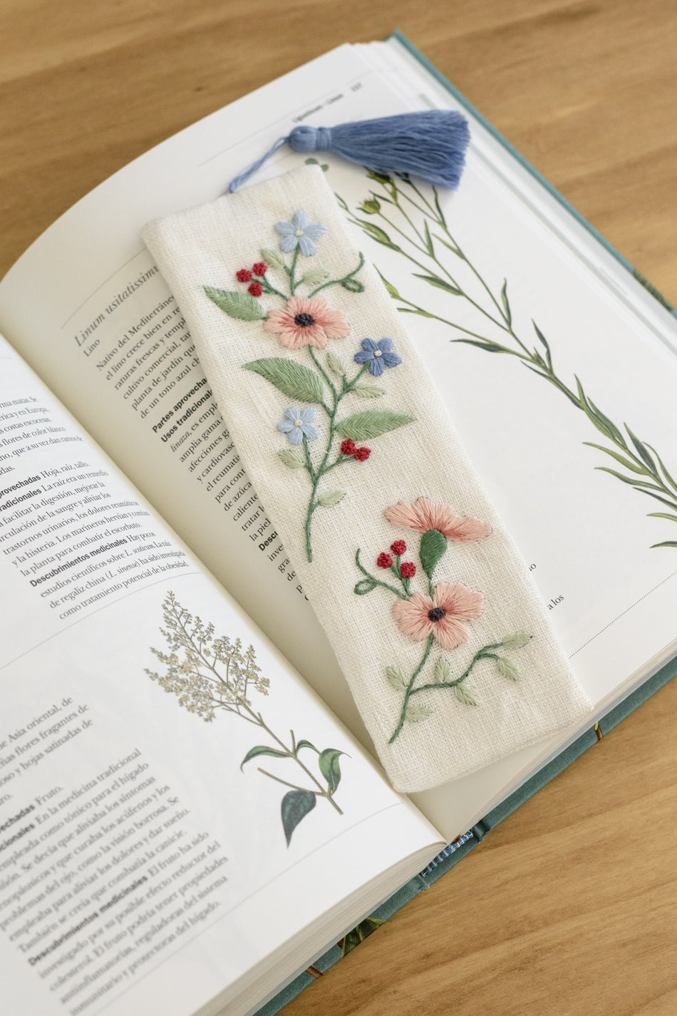 Kirjontasetti kirjanmerkki kukkavanat
