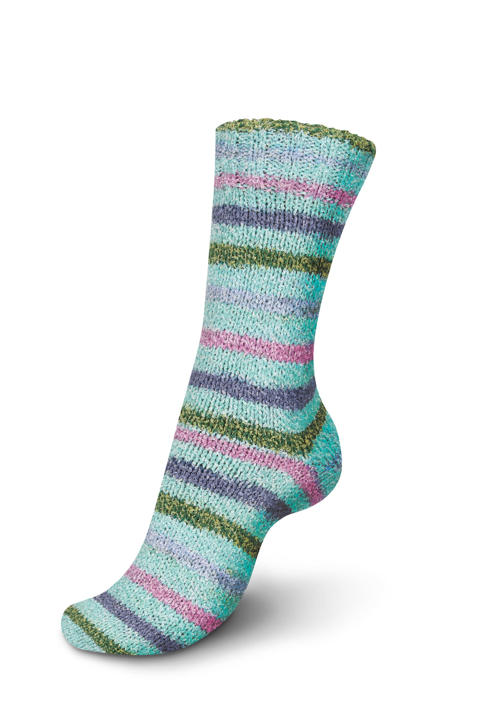 Energy Flow Color on miellyttävän pehmeä, uudenlainen sukkalanka, jossa on froteemainen tuntu. Neulottaessa lanka muodostaa raidallisen kuviopinnan. Lue lisää