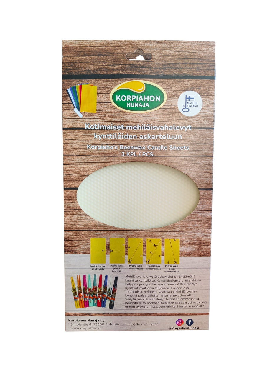 Kotimaiset mehiläisvahalevyt kynttilöiden askarteluun. 3kpl+ sydänlanka. Lue lisää