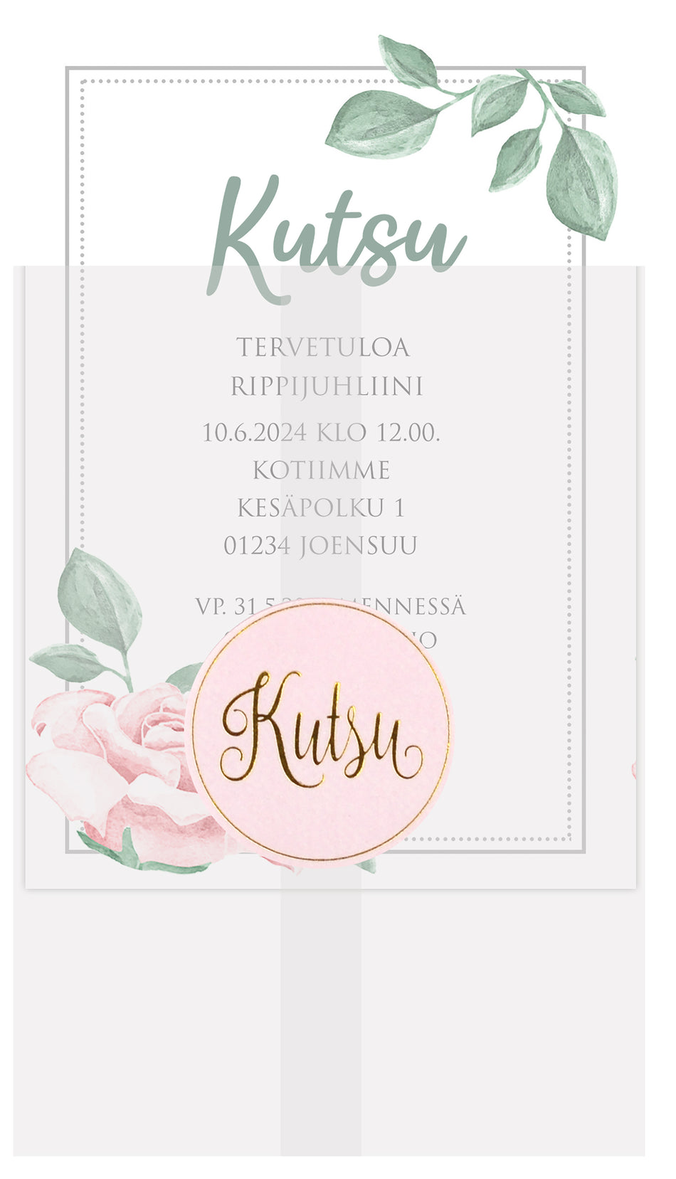 Kuultopaperikääre korttiaskarteluun. Pakkaus sisältää 10 kappaletta läpikuultavia kuultopaperikääreitä. Kuultopaperikääre on tyylikäs ja elegantti ja sopii kauniisti A6-kokoisen kortin ympärille. Viimeistele kääreen kiinnitys sinetillä, tarralla tai nauhalla. Kuultopaperikääreen taitettu koko on n. 15cm x 11cm ja vahvuus 110g/m². Kuultopaperikääre sopii C6-kirjekuoreen. Tuote on happovapaa.