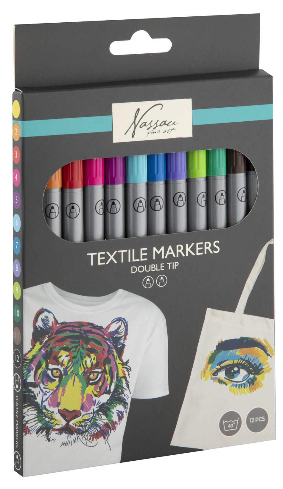 Kaksikärkiset tekstiilitussit, 12 värin pakkaus. Lue lisää