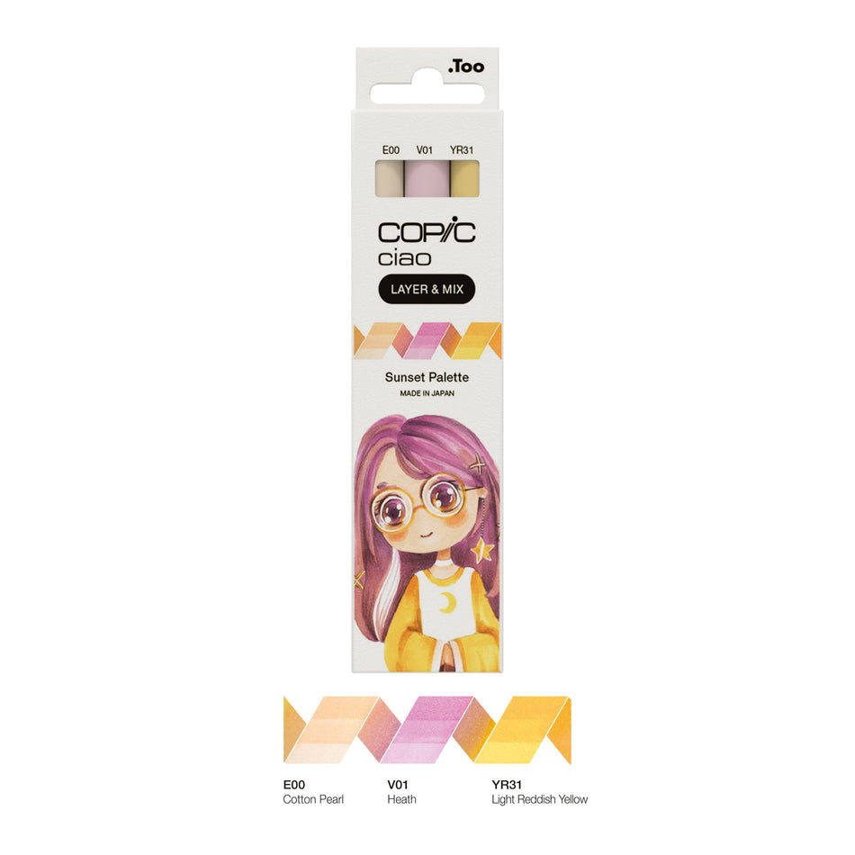 Copic-3 Layer & Mix lajitelmat tarjoavat helpon tavan hankkia hyvin yhteensopivia Copic Ciao sävyjä. Copic on ainutlaatuinen japanilainen huopakynäsarja, jota suosivat lukuisat ammattilais-manga-taiteilijat, suunnittelijat ja kuvittajat. Tussikynissä on aito sivellinkärki sekä leveämpi kärki. Lue lisää