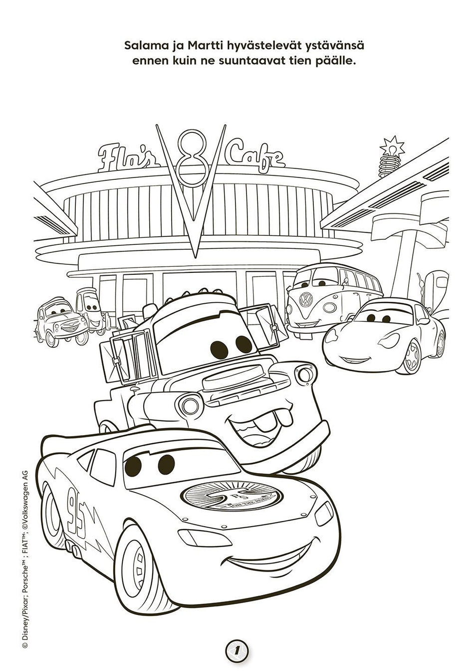 Ota esille parhaat värikynäsi ja lähde Autojen kanssa vauhdikkaaseen väritysseikkailuun. Voit myös leikkiä kirjan mukana tulevien tarrojen parissa.
