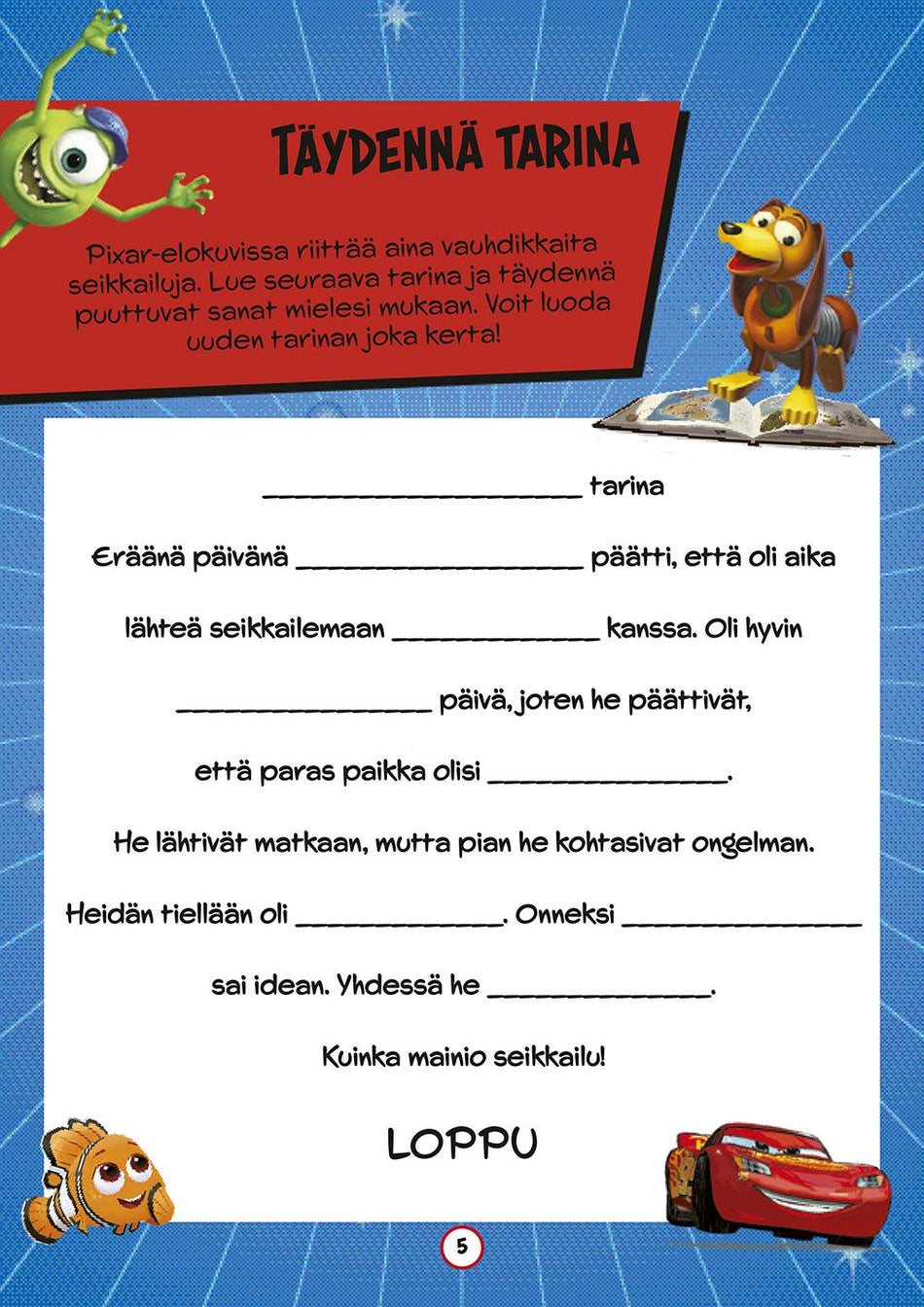 Vauhdikkaassa puuhakirjassa tapaat tutut Pixar-elokuvien sankarit. Woody, Buzz Lightyear, Nemo, Dora, Salama McQueen ja muut suosikkihahmot odottavat! Ratkaise tehtäviä, leiki tarroilla ja pidä hauskaa! Lue lisää