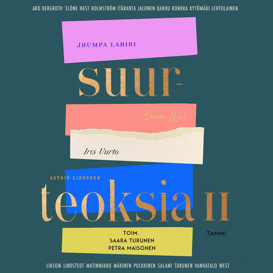 Suurteoksia II -antologia on syntynyt vastakirjoituksena perinteisille klassikkolistoille. Sen kansien väliin on kerätty tekstejä, joissa kiinnostavat kirjailijat kertovat itselleen merkityksellisestä teoksesta, sellaisesta, joka on vavisuttanut, vaikuttanut, saanut muuttamaan suuntaa. Suurteoksia II on paitsi puhetta kirjallisuudesta ja elämästä myös löytöretki kirjojen maailmaan: se johdattaa yhä uusien tekstien äärelle ja sytyttää halun uppoutua niihin kaikkiin.