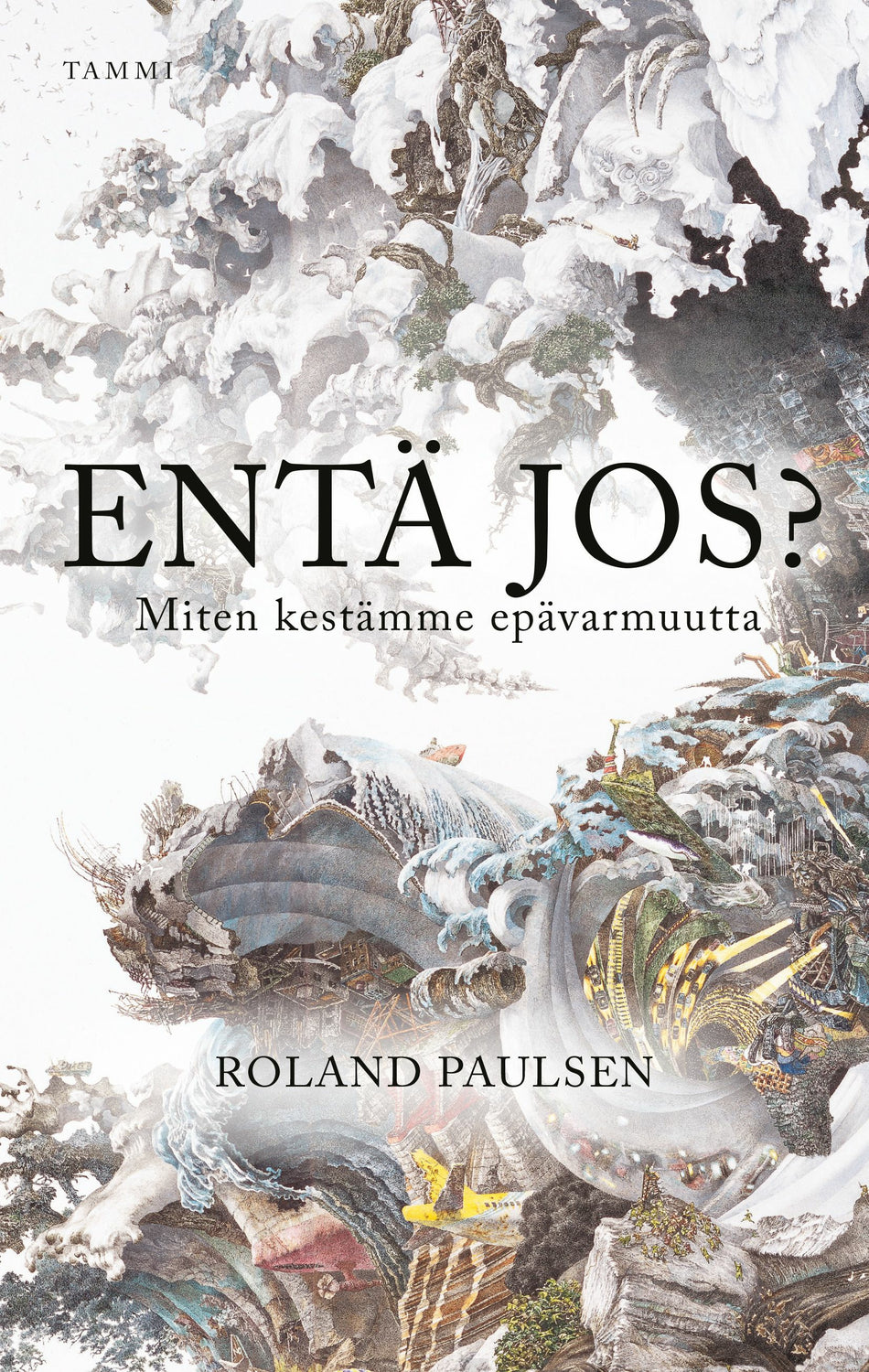 Entä jos on kysymys, jota mielemme toistelee, kun arvioimme riskejä ja kuvittelemme, mitä voisi tapahtua. Roland Paulsenin mukaan olemme – ihmisten yhteisöinä – kadottamassa kykymme epävarmuuden sietämiseen. Länsimaissa joka kymmenes syö masennuslääkkeitä, ja masennus on WHO:n tautitilastossa noussut tärkeimmäksi terveytemme uhaksi. Mikä siis on muuttunut? Taloudelliset olot ovat paremmat ja elintasomme korkeampi kuin koskaan ennen, mutta ahdistuneisuutemme kasvaa kasvamistaan ja kysymme alituisesti: entä jos?