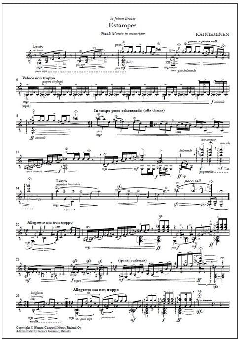Downloadable PDF edition. Kai Nieminen has an intense awareness of colours, and the possibilities of expressing these on the classical guitar, an instrument on which he is himself a fine performer. Estampes - Frank Martin in Memoriam demands a more orchestral approach from the performer. Although... Lue lisää