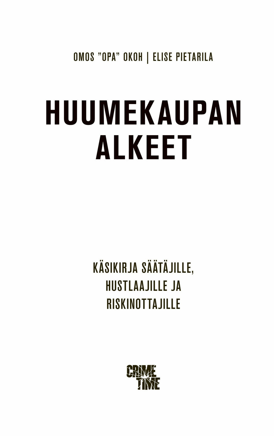 Helsinki, 2016. Kesä. Olin jo viikon asunut vakioasiakkaani, miljoonaperijän kanssa Kämpissä, vanhaa hotellia esittävässä kulississa Helsingin keskustassa. Sopiva lavastus oman elämänsä huumeparonille, rikollismaailman nälkäiselle kiipijälle, ruskealle junantuomalle kokaiinikauppiaalle, Omos Omogiate ”Opa” Okoh Jr:lle, minulle.