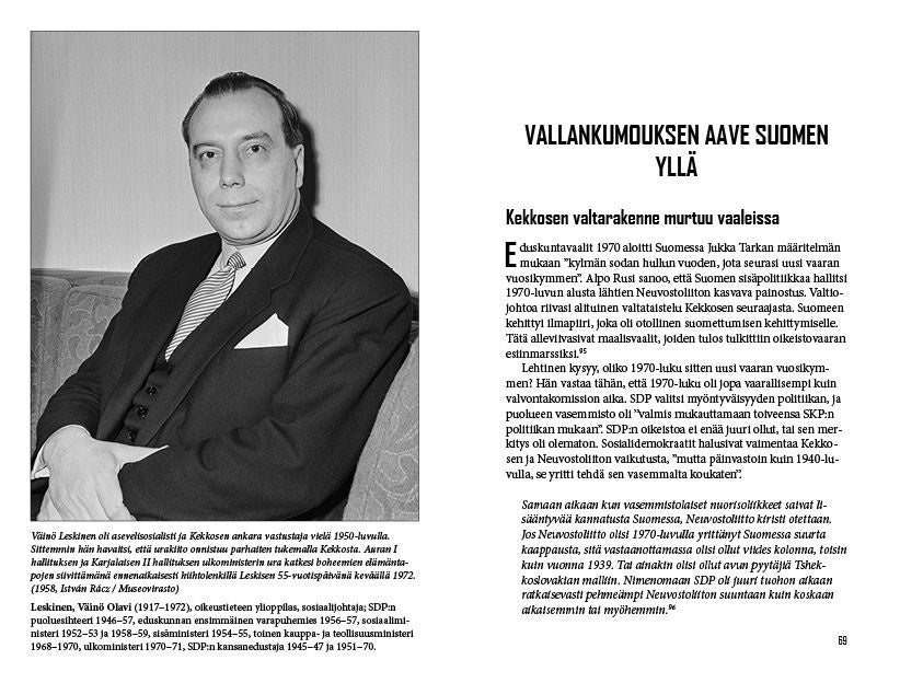 - Avainsanat Neuvostoliitto; kylmä sota; poliittinen historia; KGB; poliitikot; Kalevi Sorsa; presidentit; ulkopolitiikka; kansainväliset suhteet; valtio; sisäpolitiikka; puoluepolitiikka; hallitus; eduskuntavaalit; Urho Kaleva Kekkonen; Presidentti; Kylmä sota; EEC; suomettuminen; poliittinen kehitys; kauppapolitiikka; taloudellinen integraatio; talousyhteisöt; hallituksen muodostaminen