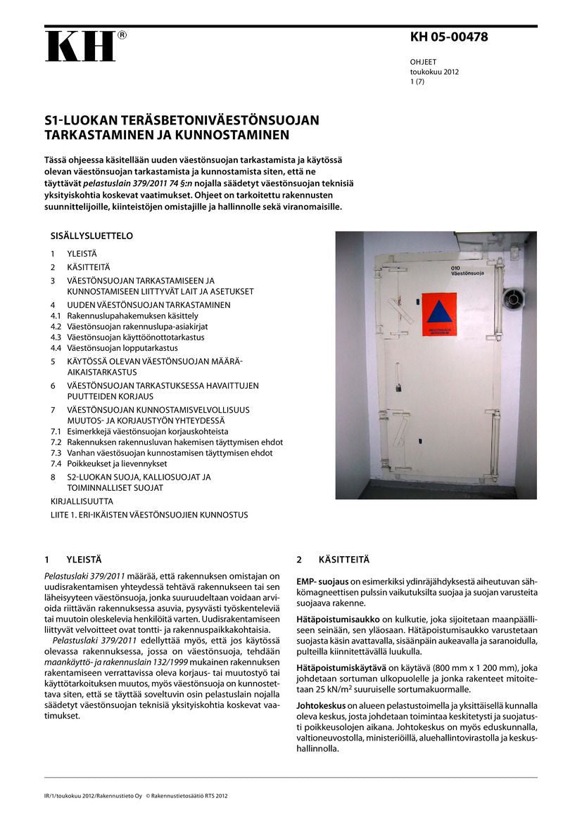 KH 05-00478, S1-luokan teräsbetoniväestönsuojan tarkastaminen ja kunnostaminen E-kirja, suomi