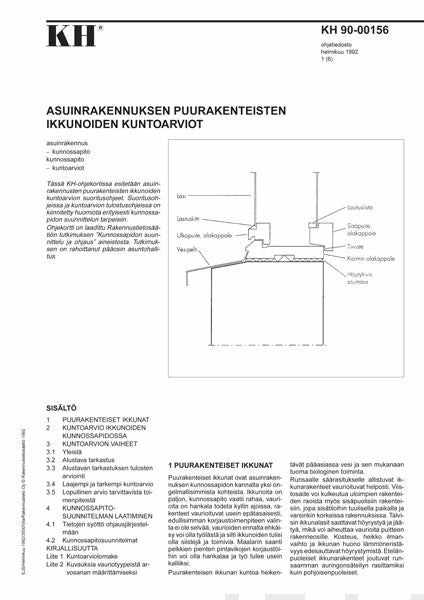 Ohjekortissa esitetään asuinrakennusten puurakenteisten ikkunoiden kuntoarvion suoritusohjeet. Suoritusohjeissa ja kuntoarvion tulostusohjeissa on kiinnitetty huomiota erityisesti kunnossapidon suunnittelun tarpeisiin. Ohjekortti on laadittu Rakennustietosäätiön tutkimuksen "Kunnossapidon suunnit... Lue lisää