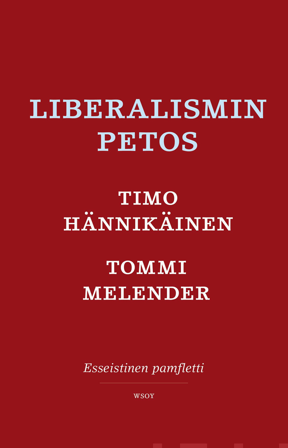 Kuinka vapaudesta tuli vankilaLiberalismin alkuperäinen idea oli kaunis. Aate halusi puolustaa yksilön vapautta ja autonomiaa, mutta vapauteen ja autonomiaan sisältyi myös kypsän aikuisen ihmisen vastuu omista teoistaan ja niiden seurauksista.Sekä kirjailijoina että esseisteinä tunnetut Timo Hänn... Lue lisää