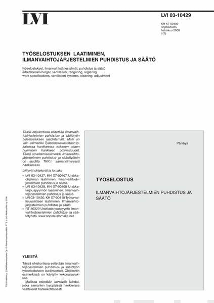 LVI 03-10429, Työselostuksen laatiminen, ilmanvaihtojärjestelmien puhdistus ja säätö E-kirja, suomi