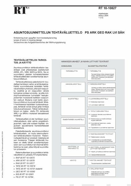 RT 10-10827, Asuntosuunnittelun tehtäväluettelo PS ARK GEO RAK LVI SÄH E-kirja, suomi