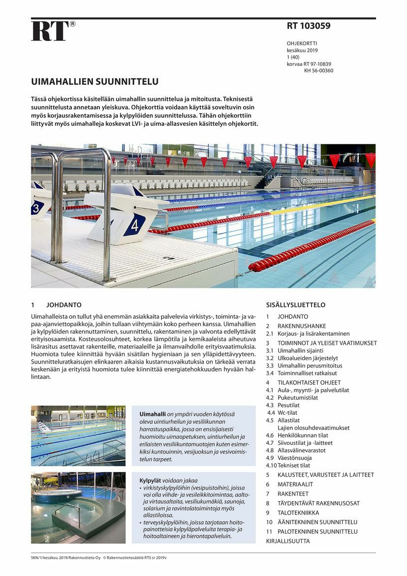 Uimahallien ja kylpyloiden rakennuttaminen, suunnittelu, rakentaminen ja valvonta edellyttavat erityisosaamista. Kosteusolosuhteet, korkea lampotila ja kemikaaleista aiheutuva lisarasitus asettavat rakenteille, materiaaleille ja ilmanvaihdolle erityisvaatimuksia. Uimahalleista on tullut yha enemman asiakkaita palvelevia virkistys-, toiminta- ja vapaa-ajanviettopaikkoja, joten hyvaan sisatilan hygieniaan ja sen yllapidettavyyteen tulee kiinnittaa huomiota. Suunnitteluratkaisujen elinkaaren aikaisia kustannusvaikutuksia on tarkeaa verrata keskenaan ja erityista huomiota tulee kiinnittaa energiatehokkuuden hyvaan hallintaan.