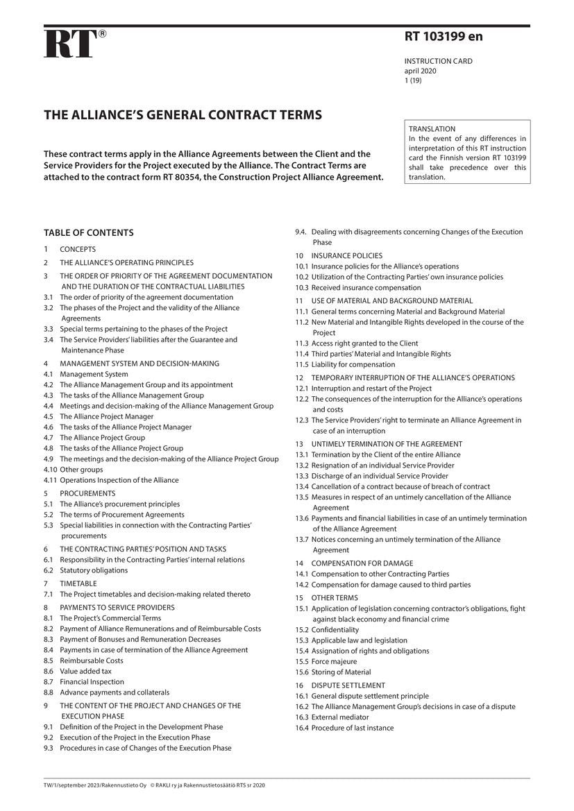 - RT 80356 Toteutusvaiheen allianssisopimus