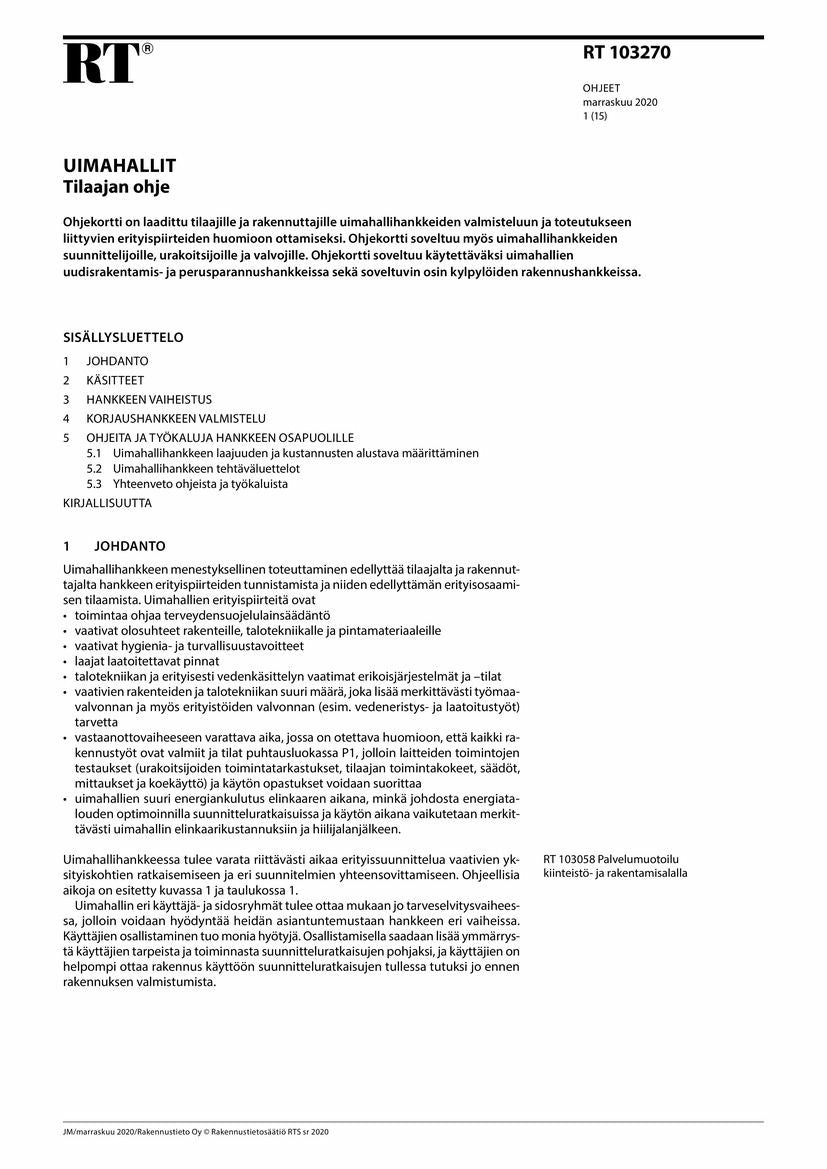 RT 103270, Uimahallit. Tilaajan ohje E-kirja, suomi
