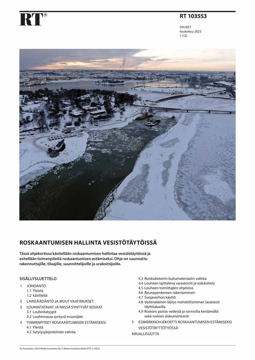 RT 103553, Roskaantumisen hallinta vesistötäytöissä