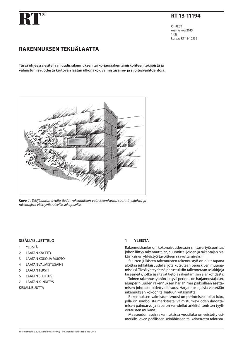 RT 13-11194, Rakennuksen tekijälaatta E-kirja, suomi