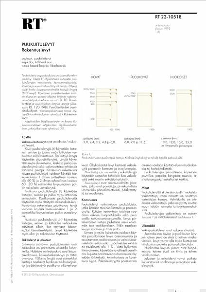 RT-ohjeessa esitetään puukuitulevyjen mittatietoja, laatuominaisuuksia, käyttöä ja suunnitteluun liittyviä tietoja. Kantavien puurakenteiden suunnittelusta on annettu ohjeita Suomen rakentamismääräyskokoelman osassa B10 Purakenteet ja valmistajakohtaista tietoa löytyy www.rttuotetieto.fi -palvelun ryhmästä 262.