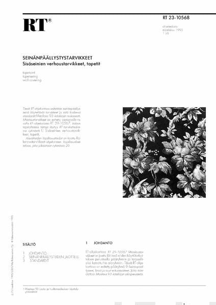 RT 23-10568, Seinänpäällystystarvikkeet. Sisäseinien verhoustarvikkeet, tapetit E-kirja, suomi