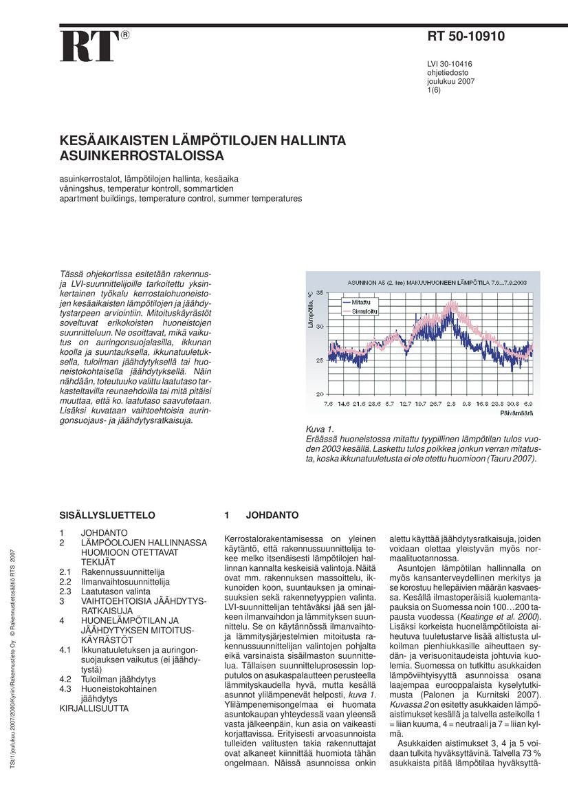 RT 50-10910, Kesäaikaisten lämpötilojen hallinta asuinkerrostaloissa