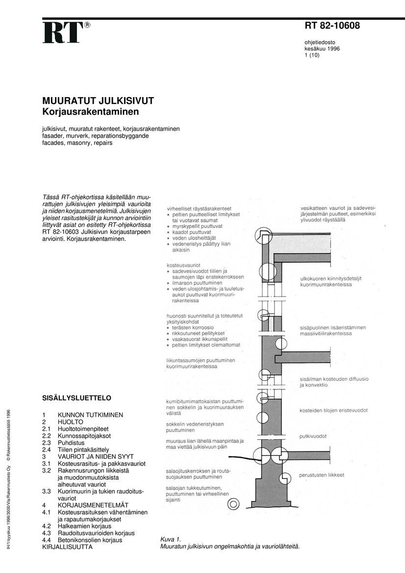 RT 82-10608, Muuratut julkisivut. Korjausrakentaminen