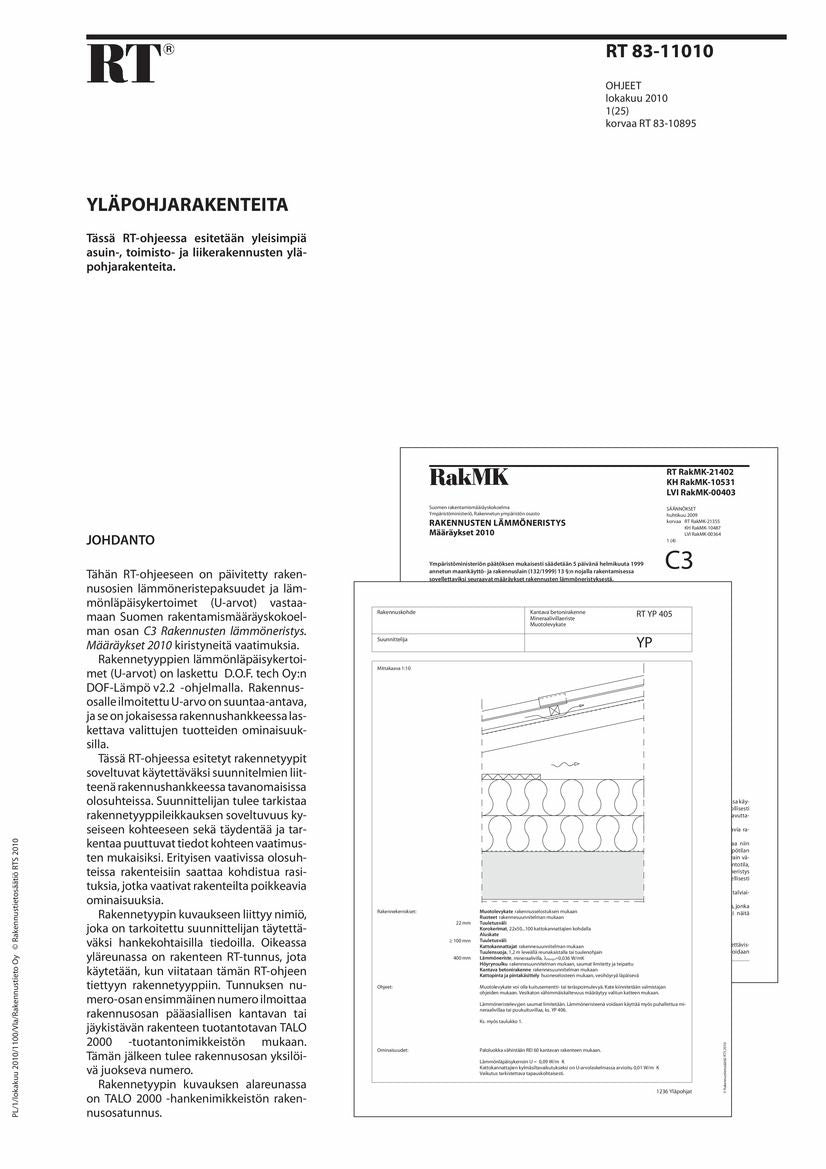 Tähän ohjeeseen on päivitetty rakennusosien lämmöneristepaksuudet ja lämmönläpäisykertoimet (U-arvot) vastaamaan Suomen rakentamismääräyskokoelman osan C3 Rakennusten lämmöneristys. Määräykset 2010 kiristyneitä vaatimuksia. Rakennetyyppien lämmönläpäisykertoimet (U-arvot) on laskettu D.O.F. tech Oy:n DOF-Lämpö v2.2 -ohjelmalla. Rakennusosalle ilmoitettu U-arvo on suuntaa-antava, ja se on jokaisessa rakennushankkeessa laskettava valittujen tuotteiden ominaisuuksilla.