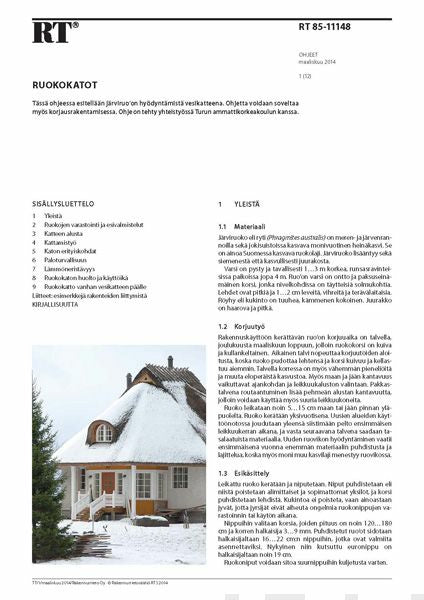 Tässä ohjeessa esitellään järviruo'on hyödyntämistä vesikatteena. Ohjetta voidaan soveltaa myös korjausrakentamisessa. Ohje on tehty yhteistyössä Turun ammattikorkeakoulun kanssa.