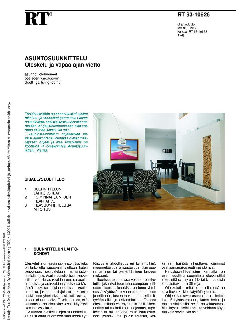 RT 93-10926, Asuntosuunnittelu. Oleskelu ja vapaa-ajan vietto E-kirja, suomi
