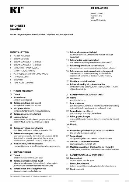 RT KO-40181, RT-ohjeet. Luokitus E-kirja, suomi