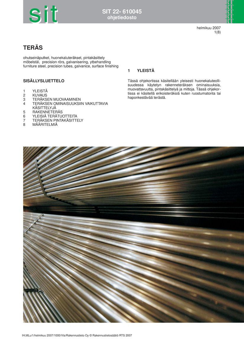- Avainsanat teräs; maalaus; maalaustyö; rakennusmaalaus; metallitarvikkeet; jauhemaalaus; fosfatointi; hiekkapuhallus; hionta; jouset; kemialliset menetelmät; kromaus; kultaus; kumitus; kuparointi; kuumavalssatut teräslevyt; kuumavalssaus; kylmävalssatut teräslevyt; kylmävalssatut teräsohutlevyt; kylmävalssaus; muovitus; mustapoltto; mustaus; ohutseinäputket; peittaus; rakenneputket teräksestä; reikälevyt; ruiskumaalaus; sinkitys; sähkökemialliset pinnoitteet; tehdaspinnoitteet; teräksen sinkitys; teräslangat; teräsmuototangot; teräsohutlevyt; teräsritilät; valssaus; verkkolevyt; teräsprofiilit