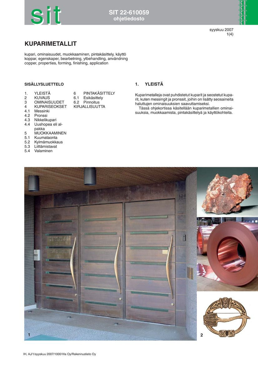 - Avainsanat maalaus; pintakäsittely; maalaustyö; rakennusmaalaus; kupari; metallitarvikkeet; alpakka; alumiinipronssi; emalointi; eroosiokorroosio; esikäsittely; galvaaninen korroosio; hiekkavalu; jännityskorroosio; kokillivalu; kuparimetallit; lakkaus; messinki; nikkelikupari; painevalu; patinointi; pinnoitus; pronssi; uushopea; valaminen; valikoivakorroosi