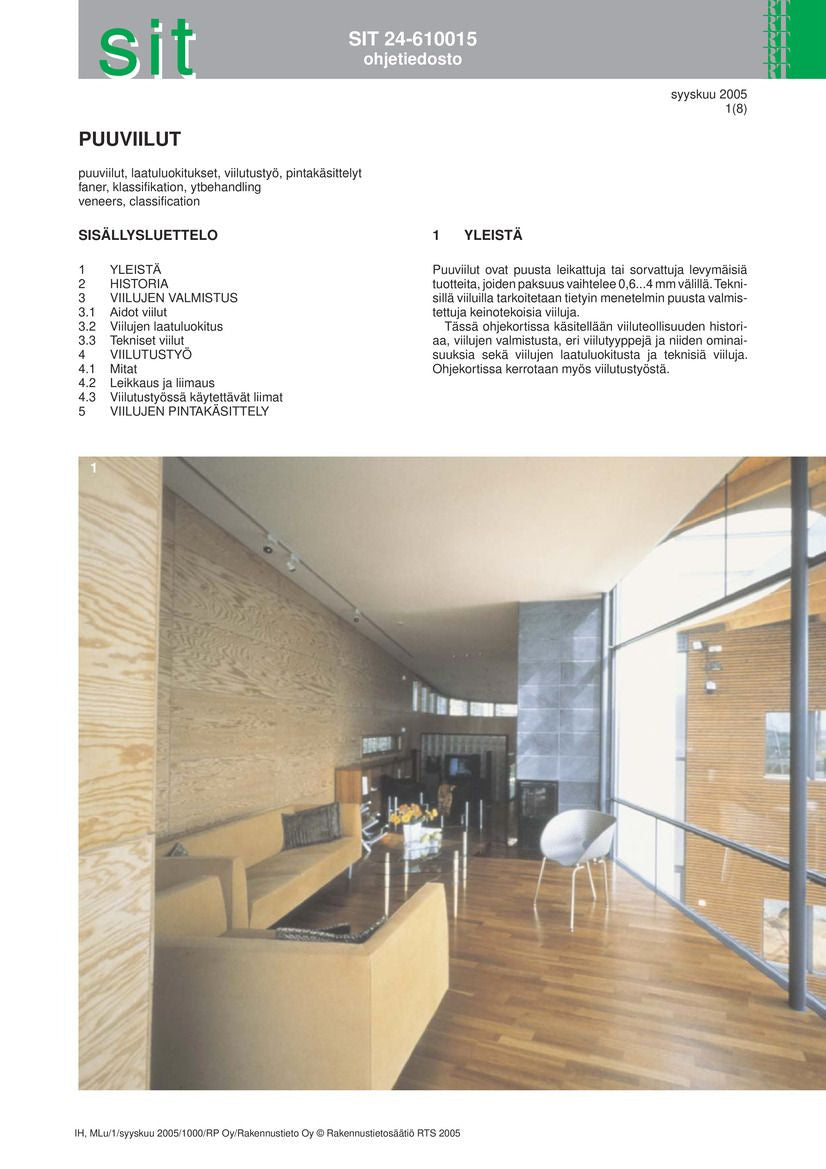 • Avainsanat pintakäsittely; puutavara; rakennuspuutavara; puuviilut; mäntyviilu; aidot viilut; koivuviilu; liimaus; läpileikattu viilu; neliöönleikattu viilu; puolisorvattu viilu; sorvattu viilu; säteisleikattu viilu; tekniset viilut; viilutustyö