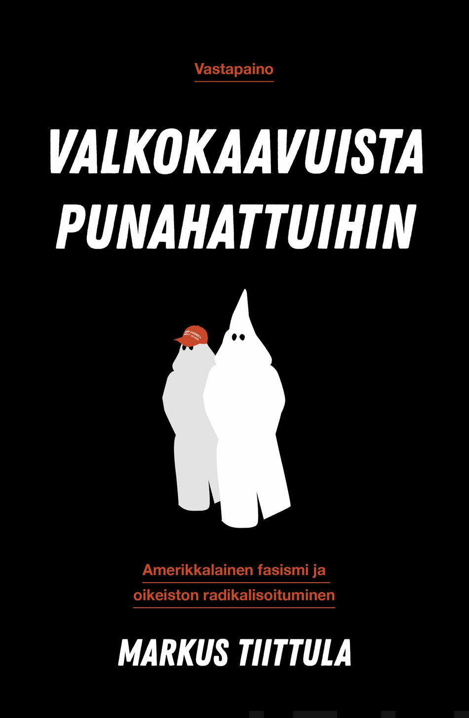 "Valkokaavuista punahattuihin" on kirja miljoonista amerikkalaisista, jotka laittavat punaisen Make America Great Again -lippikseen päähänsä ja osoittavat sillä uskollisuuttaan johtajalleen. Kirja kuvaa uskovaisten, aseintoilijoiden, maahanmuuton vastustajien, ääriliikkeiden ja tavallisten sydänmaiden asukkaiden luomaa ekosysteemiä, jossa nykyinen sirkus nähdään kulta-aikana maan historiassa.