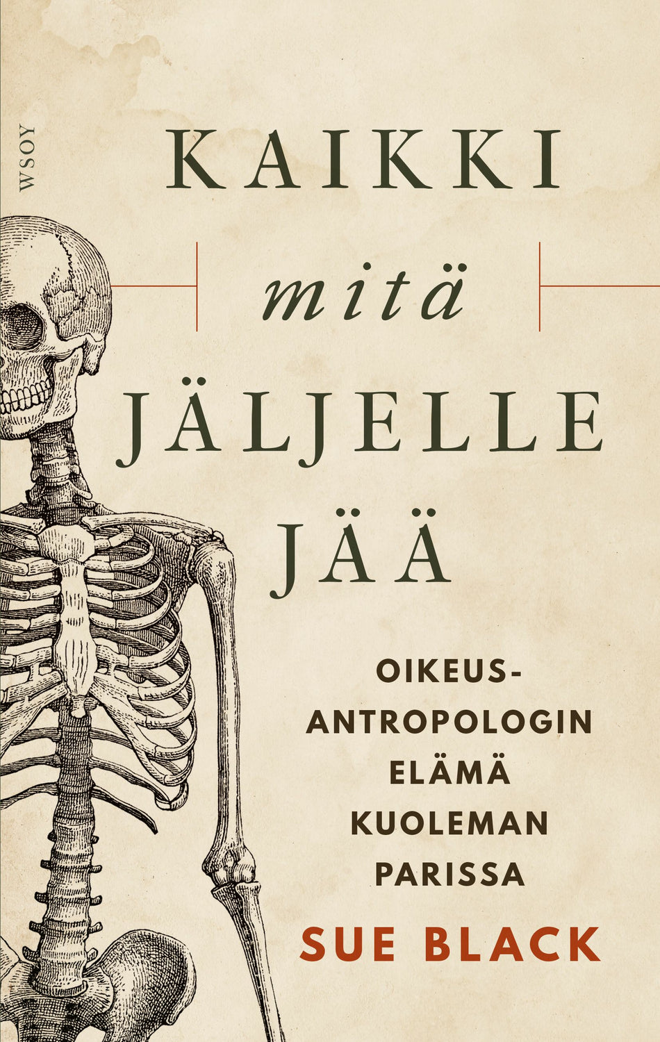Sue Black on tekemisissä kuoleman kanssa päivittäin. Anatomian ja oikeusantropologian professorina hän tutkii ihmisten maallisia jäännöksiä laboratoriossa ja hautausmailla, henkirikosten tapahtumapaikoilla sekä luonnonkatastrofien ja sotien näyttämöillä. Muistelmateoksessaan Kaikki mitä jäljelle jää Black paljastaa lukijalle kuoleman moninaiset kasvot. Lisäksi hän kertoo uransa kiinnostavimmista tapauksista ja valottaa, miten oikeusantropologian kehitys on mahdollistanut aiemmin selvittämättä jääneiden rikosten ratkaisemisen. Sue Black kirjoittaa aiheestaan pelottomasti, myötätuntoisesti ja hauskasti ja saa lukijan näkemään elämän vääjäämättömän päätepisteen uudessa valossa.
