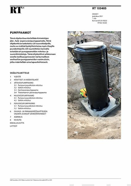 - Avainsanat tilaaja; urakoitsija; viemärivesien pumppaamot; perusvesipumppaamo; hulevesipumppaamo; jätevesipumppaamo; pumppu; pumppaus; tilakohtainen; pumppaamot; pumppaamo; vesi- ja viemärilaitteet; tilakohtaiset; sijoittelu; mitoitus; LVI-suunnittelu; jätevesipumppaamot; jätevesi; huolto; hulevesi