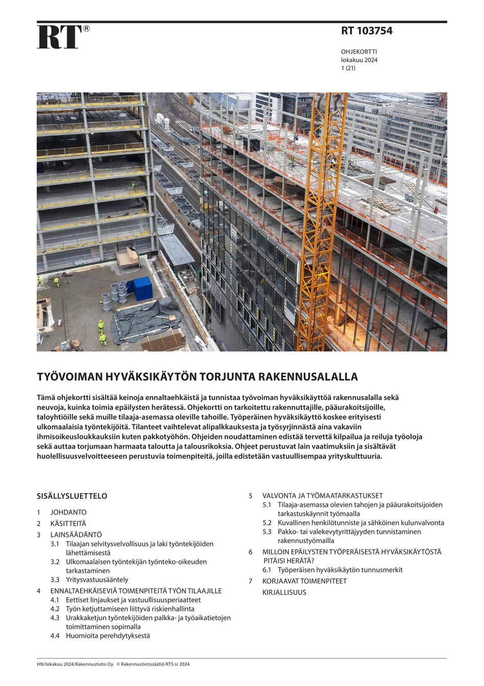 RT 103754, Työvoiman hyväksikäytön torjunta rakennusalalla