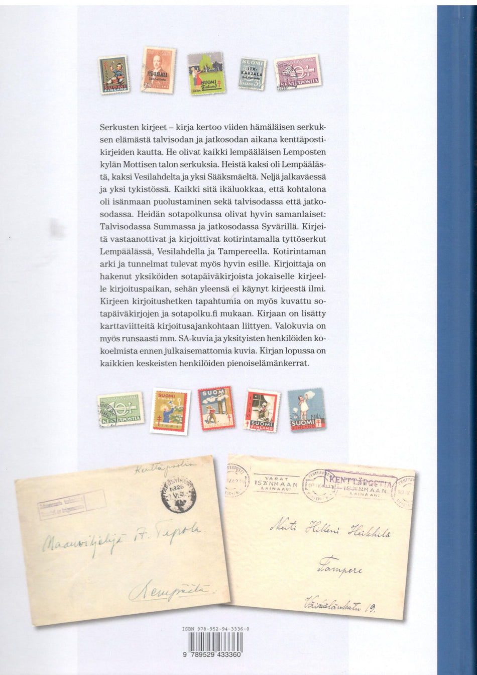 Serkusten kirjeet - kirja kertoo viiden hämäläisen serkuksen elämästä talvisodan ja jatkosodan aikana kenttäpostikirjeiden kautta. He olivat kaikki lempääläisen Lemposten kylän Mottisen talon serkuksia. Heistä kaksi oli Lempäälästä, kaksi Vesilahdelta ja yksi Sääksmäeltä. Neljä jalkaväessä ja yks... Lue lisää