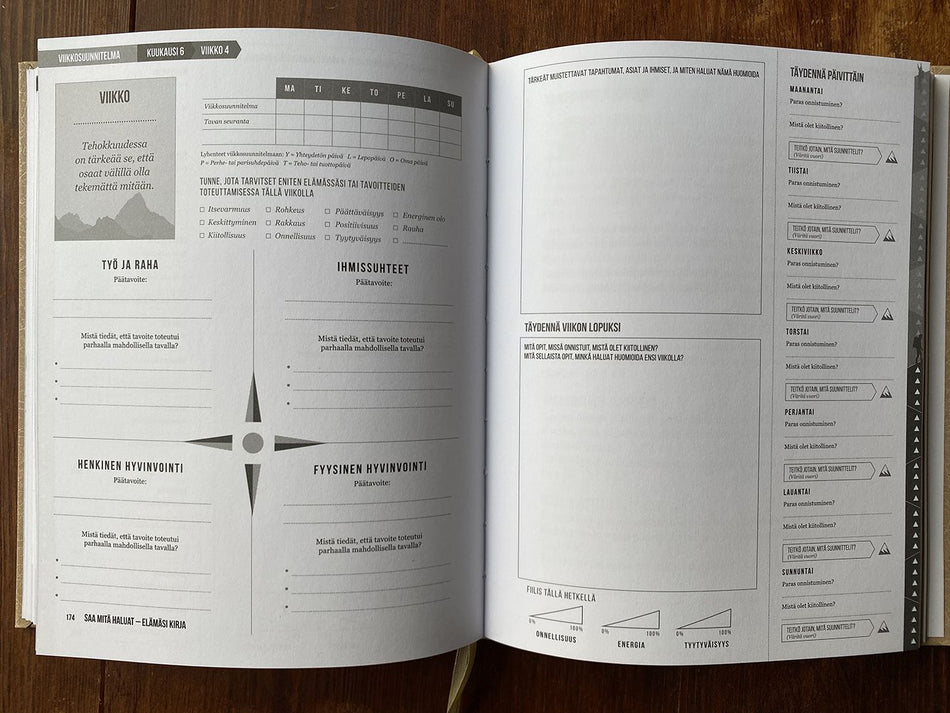 Ilkka Koppelomäen uusin teos on jatkoa suursuosion saavuttaneelle Saa mitä haluat -oppaalle. Elämäsi kirja pysäyttää sinut tarkastelemaan sitä, mitä elämältä oikeasti haluat ja miten voisit tehdä siitä mielekästä. Ohjatun prosessin avulla voit laatia selkeän, yksityiskohtaisen ja juuri sinulle so... Lue lisää